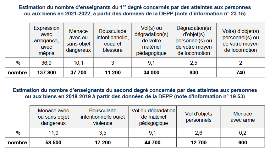 (rapport d’information sur le signalement et le traitement des pressions, menaces et agressions dont les enseignants sont les victimes)