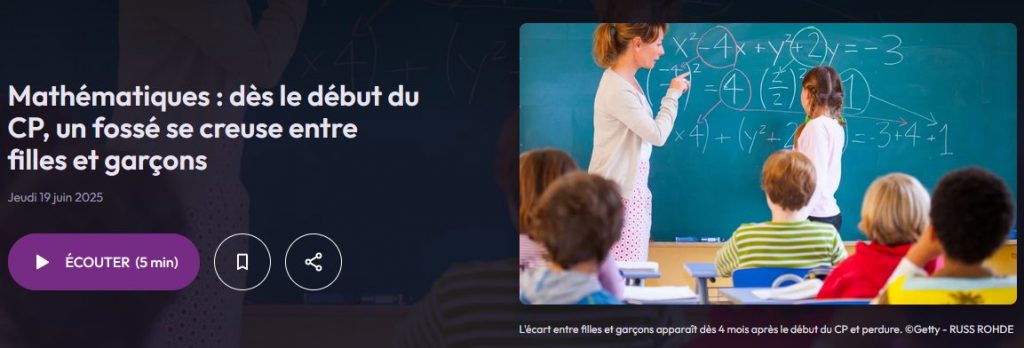 Egalité Filles / Garçons, Elémentaire, Maternelle, Mathématiques [Podcast] Mathématiques : dès le début du CP, un fossé se creuse entre filles et garçons Posted on 21 octobre 2025Author Olivier Rouchon Cliquez sur l’image pour accéder à la page de France Culture.