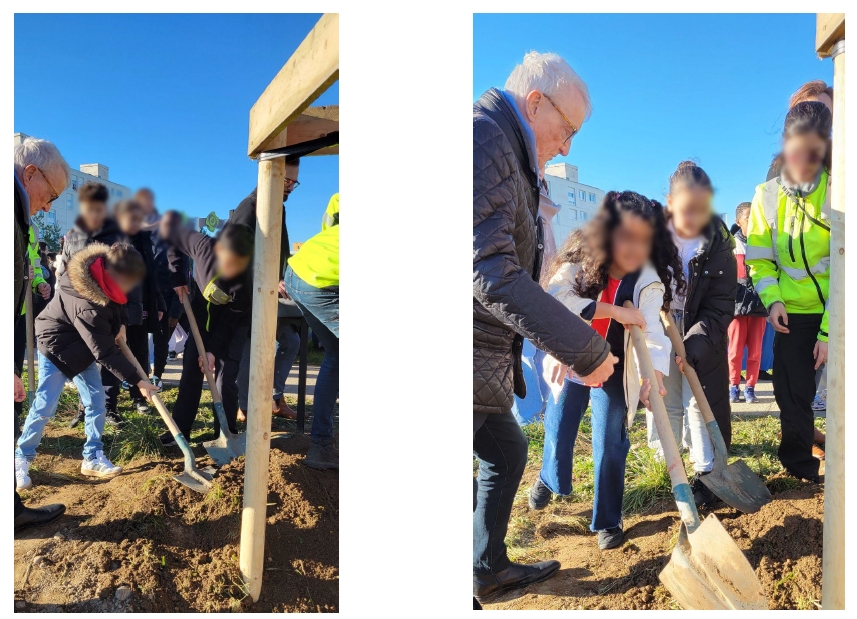 Les élèves des classes de CM, CE2 et CP ont interprété avec cœur l’hymne national, sur la place du forum où désormais un pommier symbolise cette commémoration et ont à nouveau chanté la Marseillaise, accompagnés des CE1, à 16h20 dans la cour des