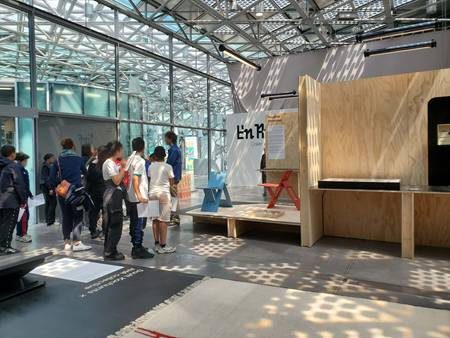 - Étape 03 : réalisation des maquettes de projet (par groupe). Mise en 3 dimensions des idées des élèves. En parallèle de ce travail artistique, les élèves ont visité la Biennale du design 2025 (ressource(s) : présager demain) et ont eu des réflexions autour du design et de l’aménagement d’espaces. La restitution de ce parcours artistique est présenté au CDI jusqu’en mars 2026. Une boite aux lettres consultative est mise en place sur février et mars pour que chacun puisse donner son avis par rapport aux différentes solutions d’aménagement proposées.