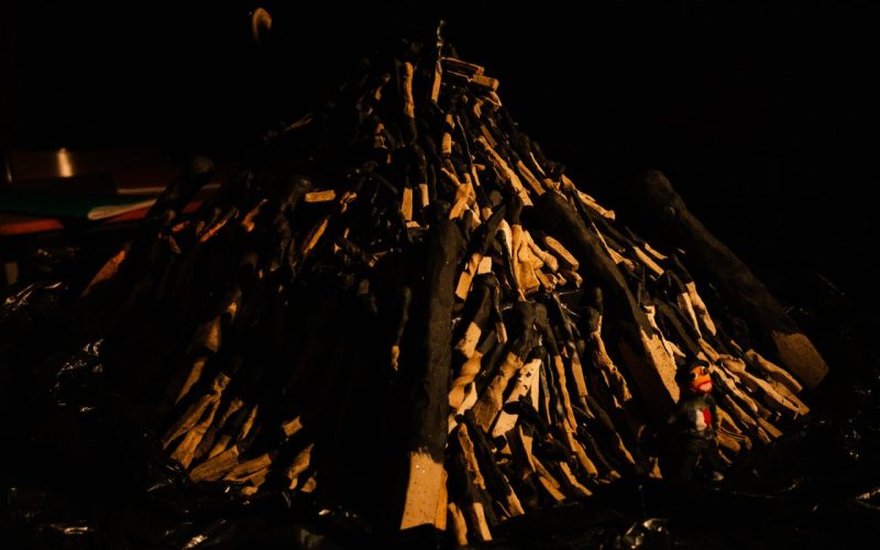 Les allumettes consommées sont entassées.